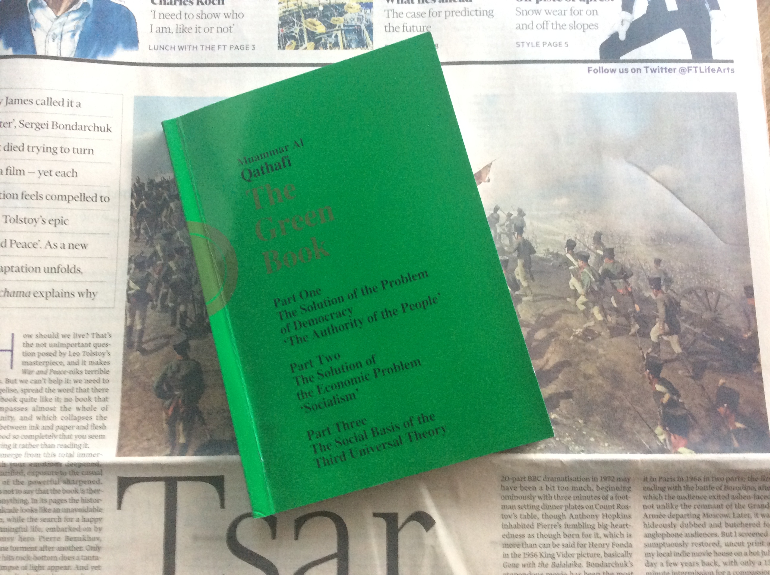 Staying with politics, my grandfather had an inquiring mind and obtained (how, is another story) Mao’s Little Red Book. I have Gaddafi’s Green Book and it may surprise you that I agree with his opening salvo. I will let you judge for yourself.