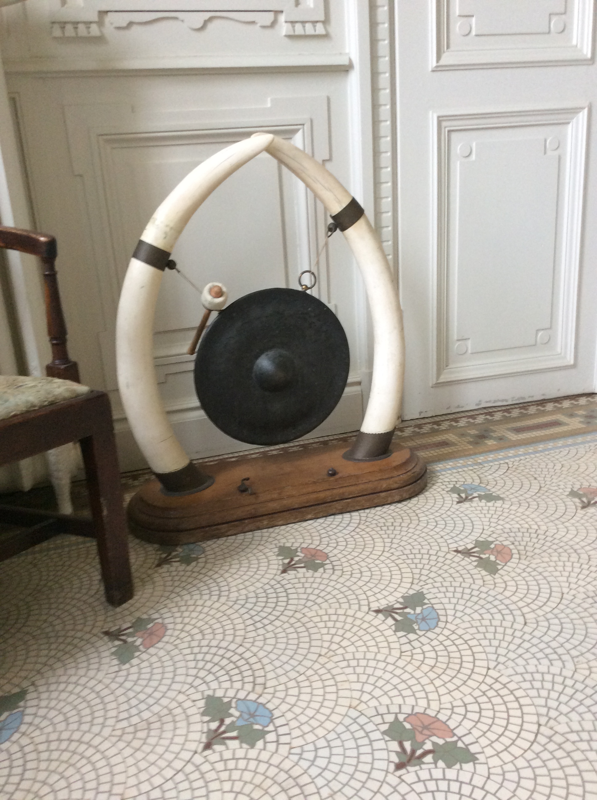 I took this gong picture where I am staying in the Gers. The ivory content is impressive. It is not a recent acquisition having been passed down a few generations but it’s probably a safe guess that the tusks are a late 19th century trophy. I am enjoying sounding it before meals, not brekker natch.