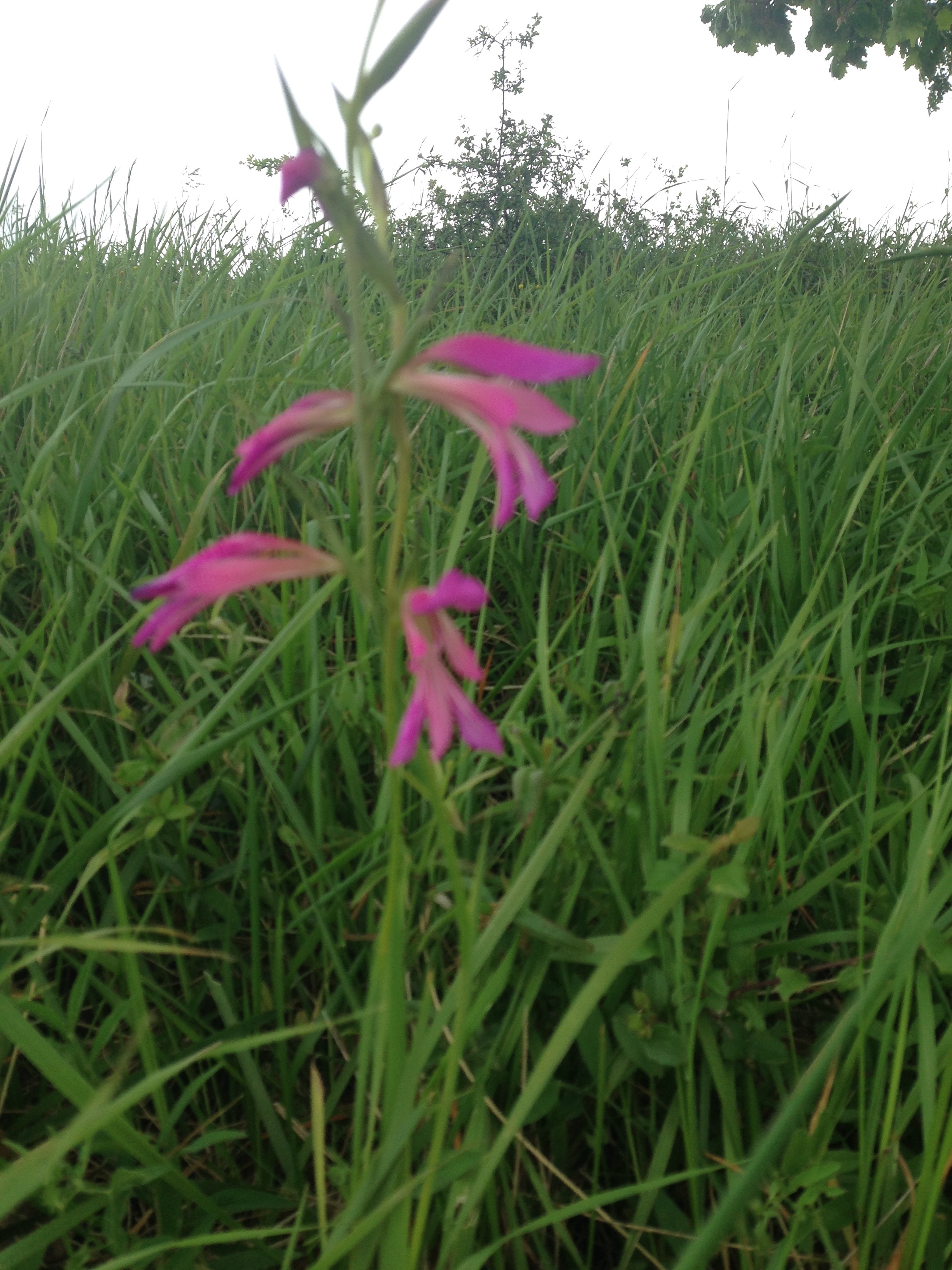 Walking through Gascony provides unalloyed pleasure. These pictures were taken on a section of a Grande Randonnée called the Heart of Gascony. Above is a field of flax in the valley. The wild flowers are beautiful. Here are a gladioli and a bee orchid.