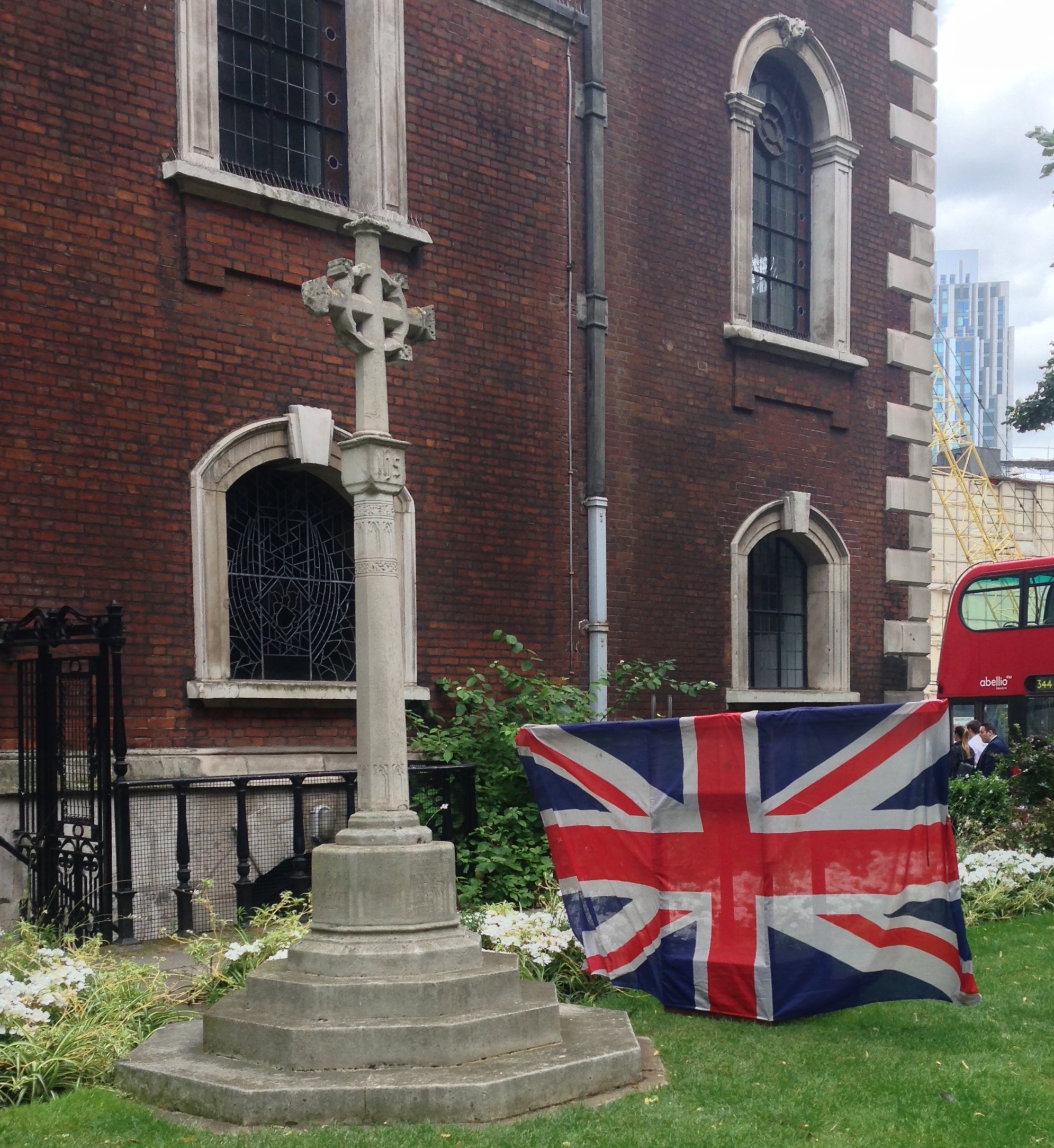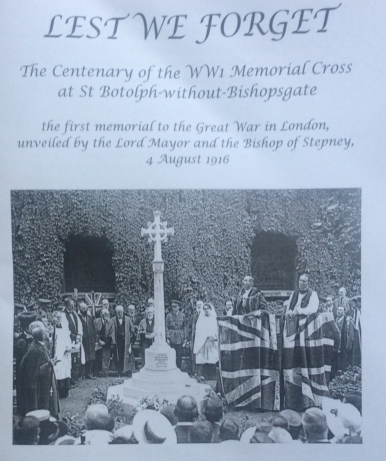 Well, the Bishop of Stepney, if indeed he is a lefty, only indicated this by his facial hair. After the Service someone kindly said that Jesus Christ had a beard. I took this picture when I arrived and you can see that it recreates the scene in 1916, although the church then was smothered in some creeper.
