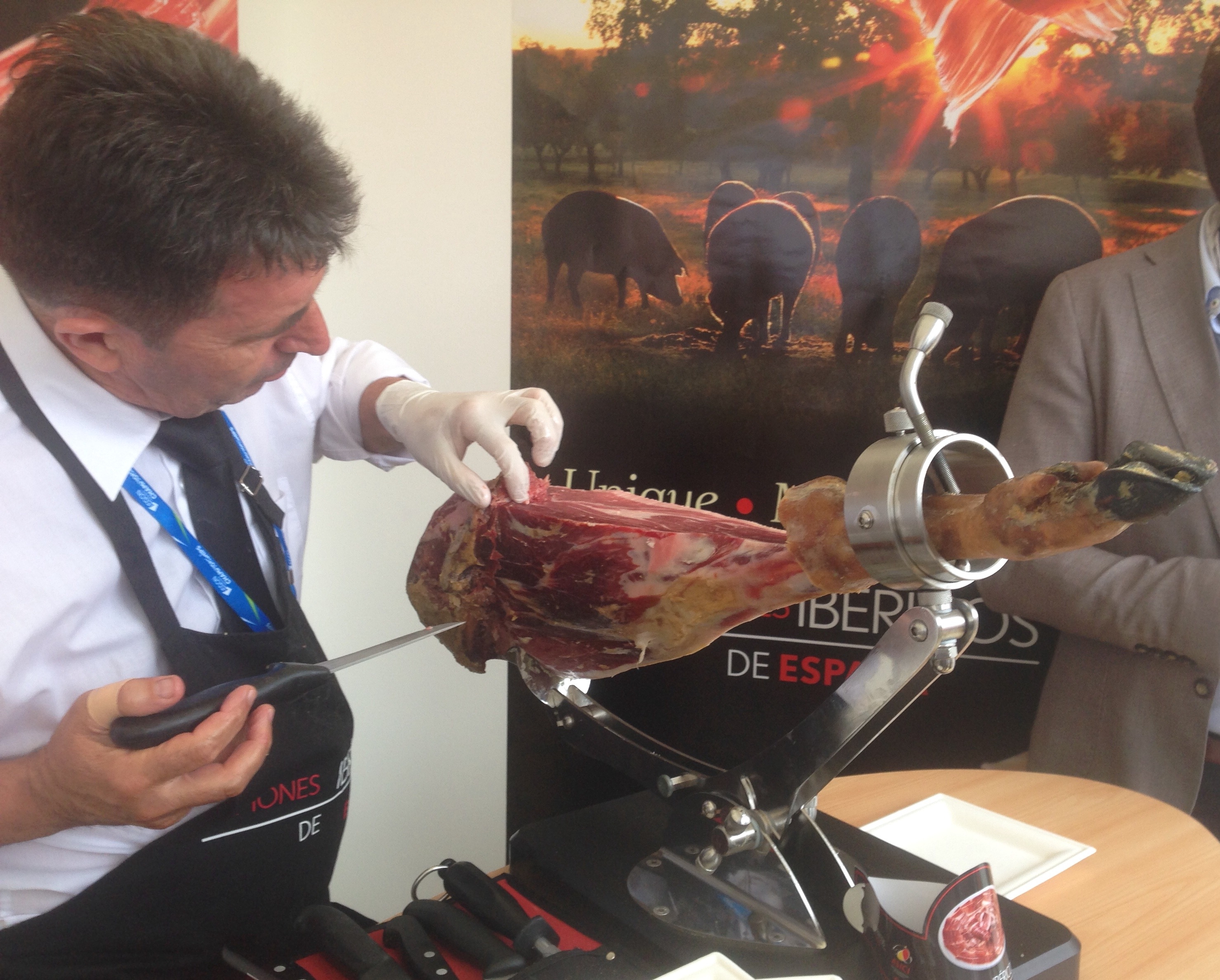 Meanwhile, to work up a thirst in one of the rain intervals, I had a plate of jamon. It was expertly carved off the bone and was full of flavour; fatty and quite salty. It was delicious and well worth the queue. One surprise, it was free. I shared my plate with a security guard and two friends. This has always seemed to me the most probable explanation for the biblical feeding of the five thousand; those that had shared with those that had not.