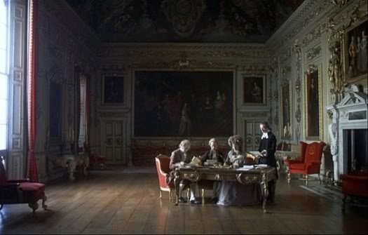 Michael Horden’s deadpan narration sets the tone. The photography is dazzling, especially the interior scenes that are like seeing pictures by Reynolds, Gainsborough or Watteau come alive. My club has two group portraits by Reynolds and I was often reminded of them. The costumes are completely realistic, the music a mix of Bach, Vivaldi, Schubert, Mozart, Handel and Irish folk music (played by The Chieftains). Much of the film was shot, over nearly a year, in Ireland. Here is a list of the locations culled from Wiki that is worth quoting in full.