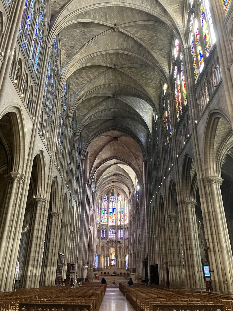 Churches at least are open on Mondays but the Basilica of Saint-Denis was not crowded, although it deserves to be. The site is of some antiquity. Saint Denis is supposed to have been buried here after he was beheaded by the ruling Romans circa 250. In 632 Dagobert I, King of the Franks, expanded the church and shrine into the Abbey of Saint Denis, a Benedictine monastery, and is the first king to be buried here.