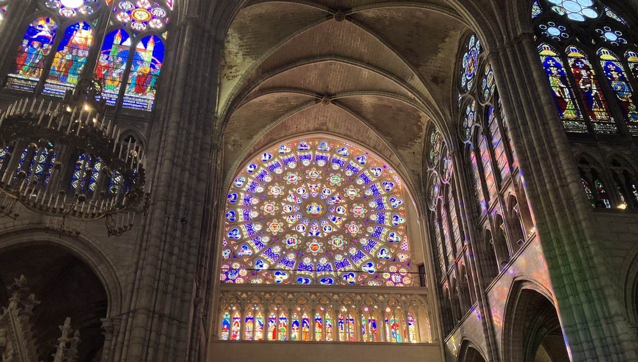The abbey church was much altered in the 12th century into what you see today; you notice the scaffolding? The spire was 282 feet until it was dismantled in the 19th century. This was a tiddler compared to Salisbury, 404 feet, but it is being rebuilt. Work started in 2022 and might be completed in 2029 and it might cost € thirty-seven million.