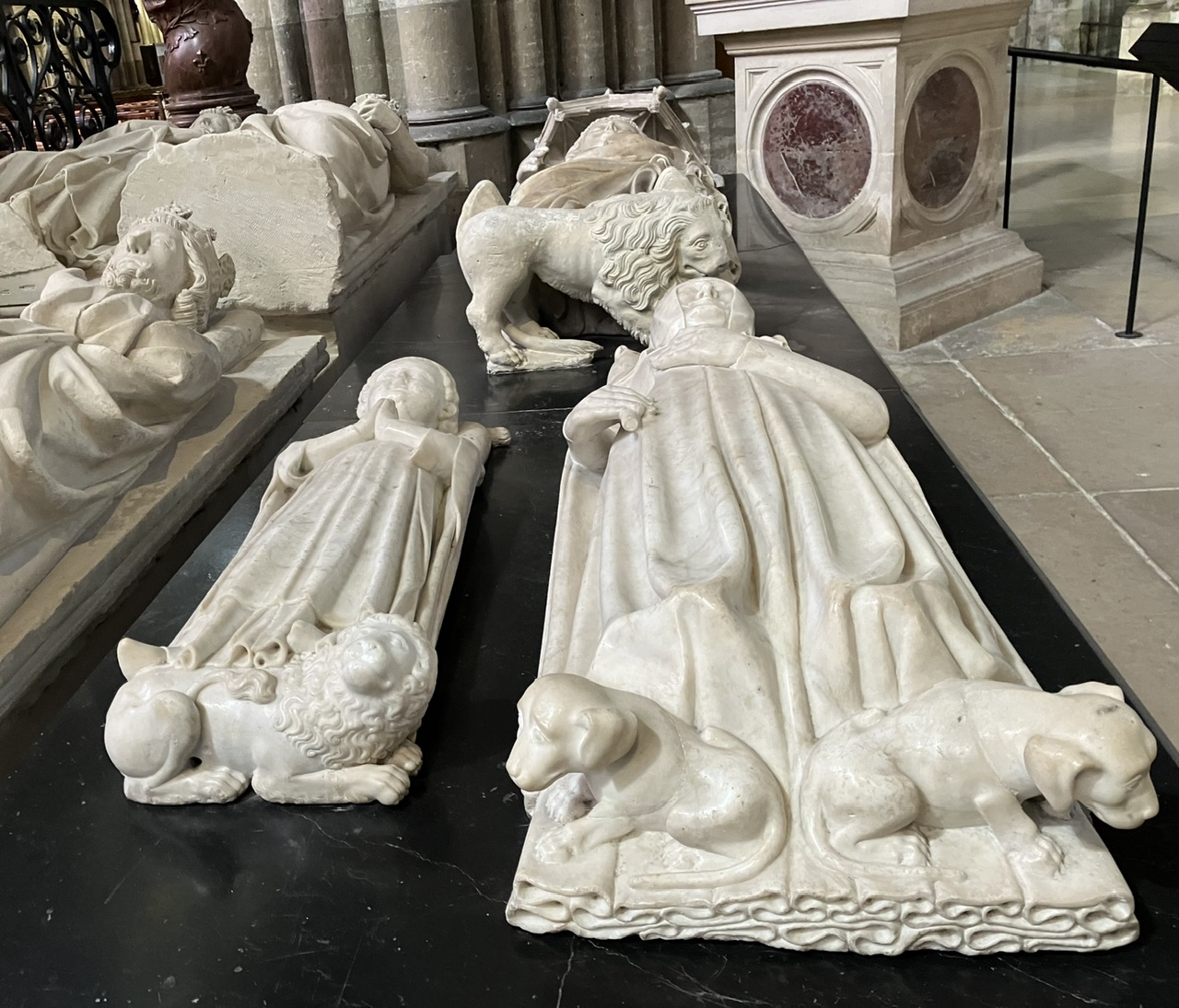 The Franks may not have ben aesthetes but calling their time in the sun the Dark Ages is frowned upon today; the Early Middle Ages is preferred. Anyway, another King of the Franks to be buried at S-D, in 768, is the delightfully named Pepin the Short. Nobody has heard of him because everyone has heard of his son – Charlemagne. More than thirty-five kings have been buried here, starting with Clovis I in 511 and continuing until Louis XVIII in 1824, and a plethora of members of their families. The Church Monuments Society could spend many enjoyable days here.