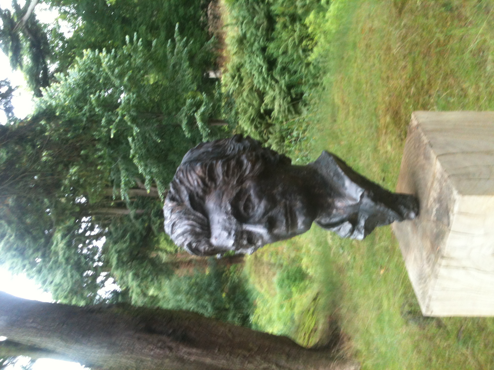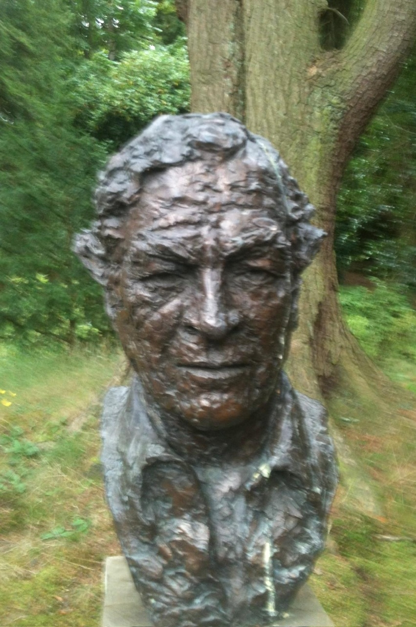 The park has four bronze busts on granite plinths. They can be summarised as Penicillin, Bond, Burns and Boats. Here they are.