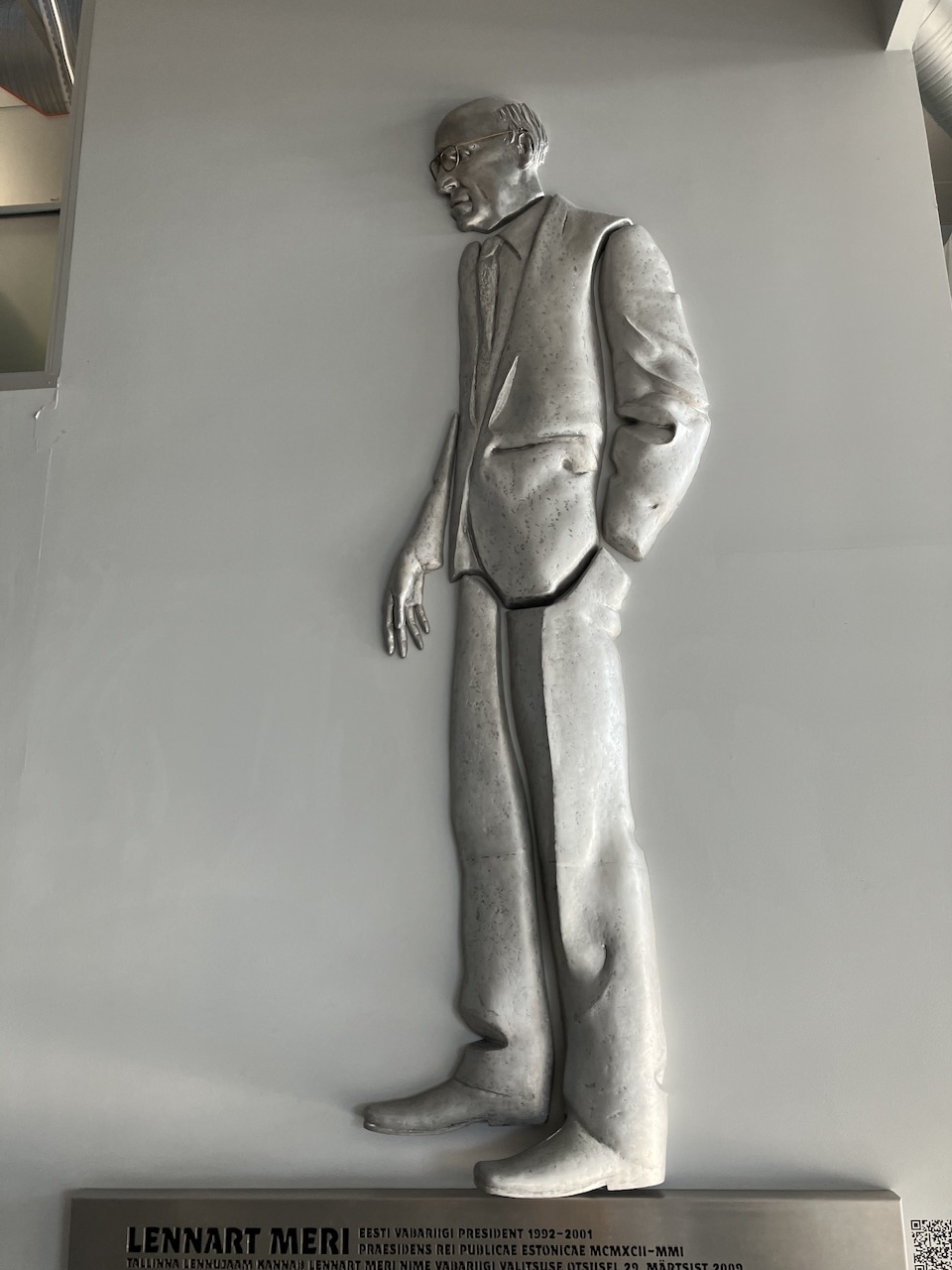 An alternative to commissioning a life-size bronze is to opt for a relief. Tallinn airport is named in honour of Lennart Meri whose life featured in 1 Pangari