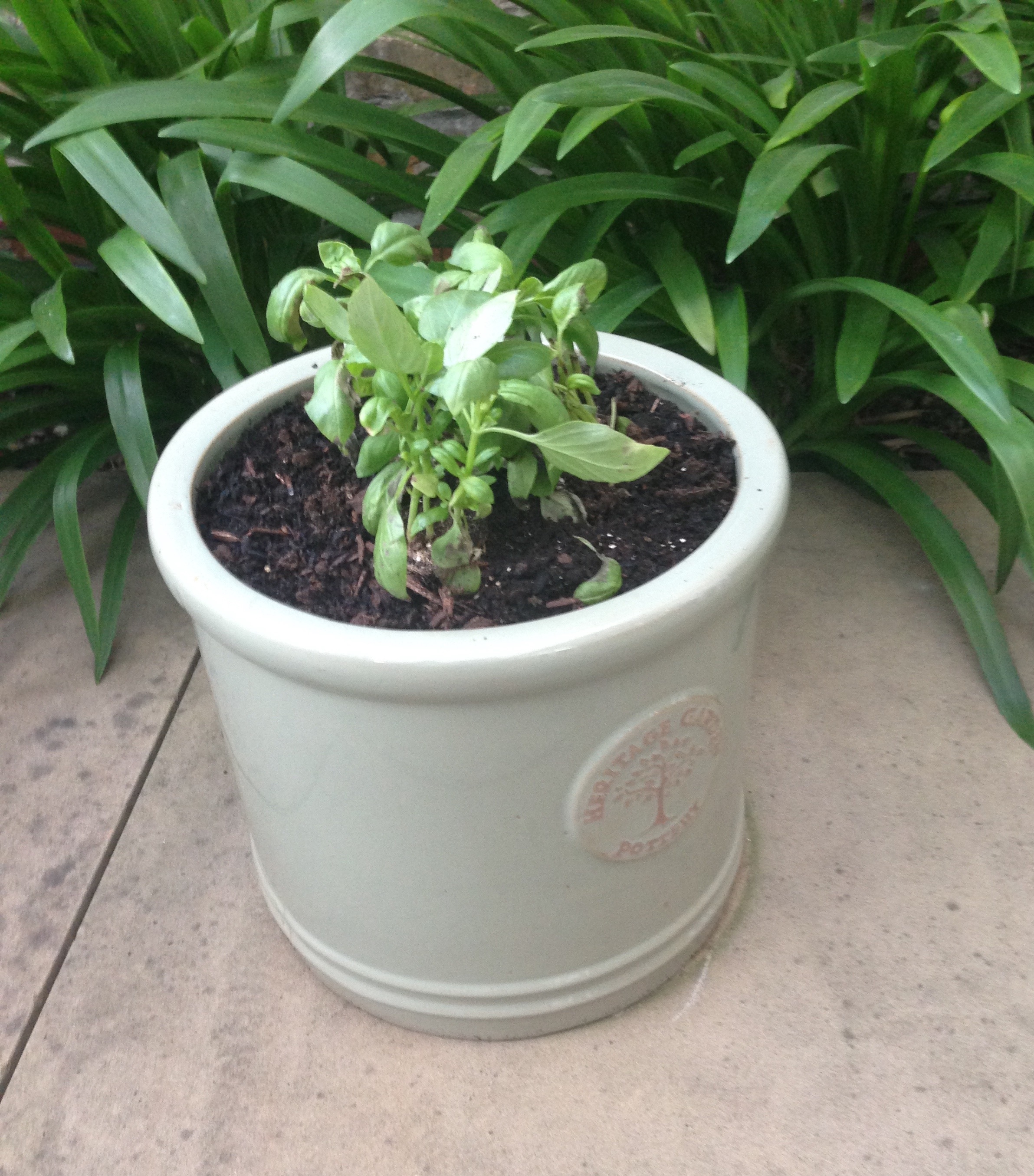 Yesterday I was on light duties, as the army calls it. I planted some sweet basil in a pot (a present from Ingy and Alan) and in the evening did something especially pleasurable – making aioli in the garden listening to Radio 3, while sipping a gin and tonic.