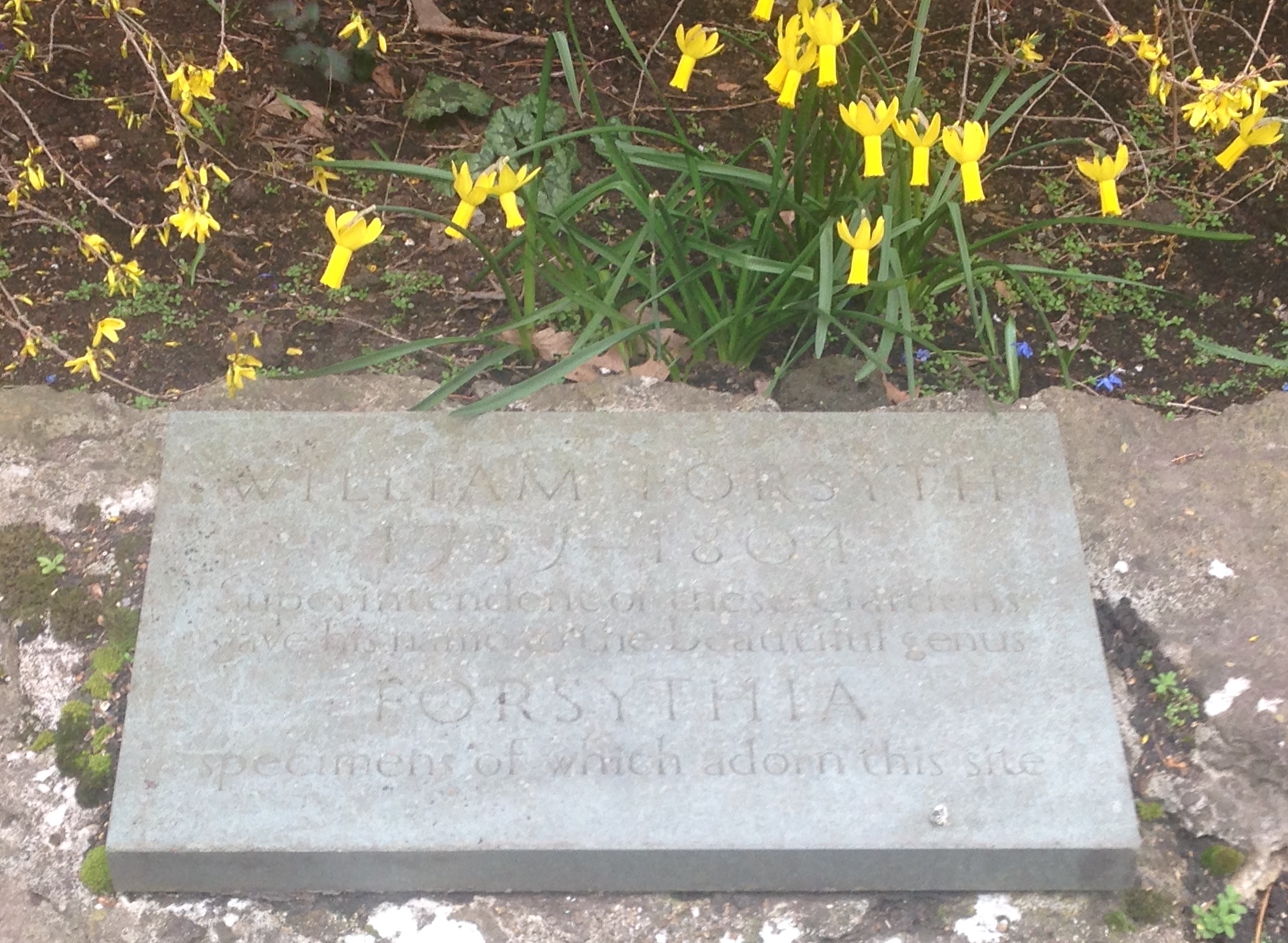 I came across this plaque in Kensington Gardens on Sunday. It is the right time of year to see it because William Forsyth’s Forsythia was flowering.