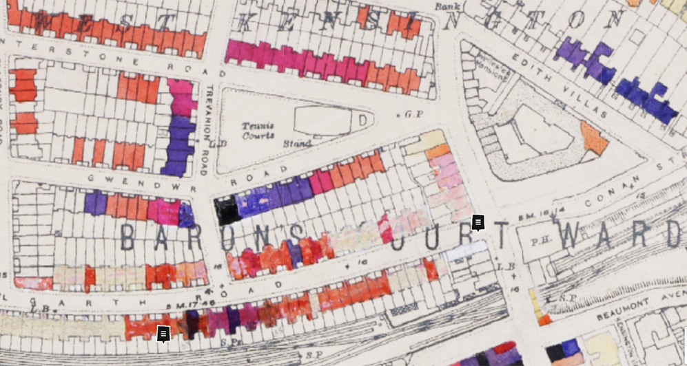 This is a pre World War II map showing part of West Kensington, north of Talgarth Road and west of North End Road.