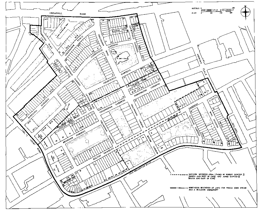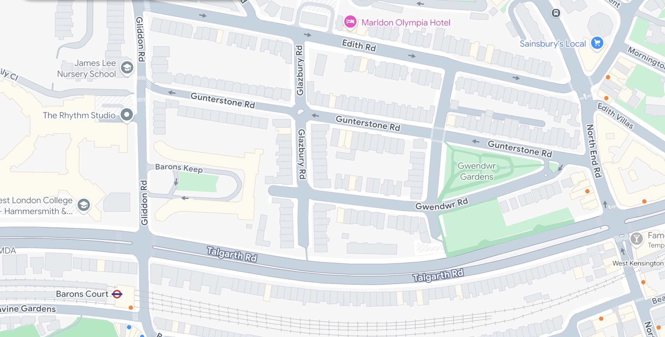 In February 1944 it sustained heavy bomb damage. After the war the patch of land marked as tennis courts was given to Fulham Council to lay out and use as a memorial garden. The donor was Robert Gunter, hence Gunterstone Road. His great grandfather, James Gunter, was a confectioner of Gunter’s Tea Shop. Over three generations in the first half of the 19th century the Gunters had built up a significant property portfolio in Kensington and it seems to me they wouldn’t have missed this small triangle of land rather unfashionably west of their main holdings.
