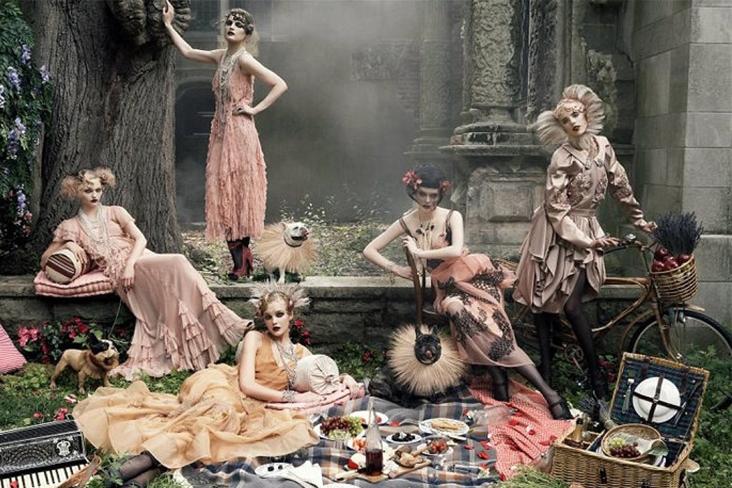 Reluctantly, I am grateful for the 2006 film, The Devil Wears Prada, as it surely inspired them. The September Issue tells the story of the making of the September 2007 issue of American Vogue. Editor-in-chief, Anna Wintour, presides frigidly and it is left to her side-kick Grace Coddington to provide warmth and humour. It is not for nothing that Ms Wintour has earned the sobriquet Nuclear. Concealed behind dark glasses she sedulously ignores the camera crew and is pretty sharp with her staff. Poor Mario Testino gets a good bollocking for not taking enough pictures on a photo-shoot in Rome with Sienna Miller. I suppose it was an expensive jaunt and the shareholders might have expected a few more happy snaps. Here is an example of Grace Coddington’s work.