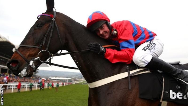 There was a popular win in the big race, the Queen Mother Champion Chase. Ten year old, Sprinter Sacre had not raced since 2014 after heart problems but proved that he had made a full recovery when he won by seven lengths. The racing crowd are generous and cheered him home although he was not the favourite. Here he is after the race with Nico de Boinville up. It looks as if he’s been at the Guinness too.