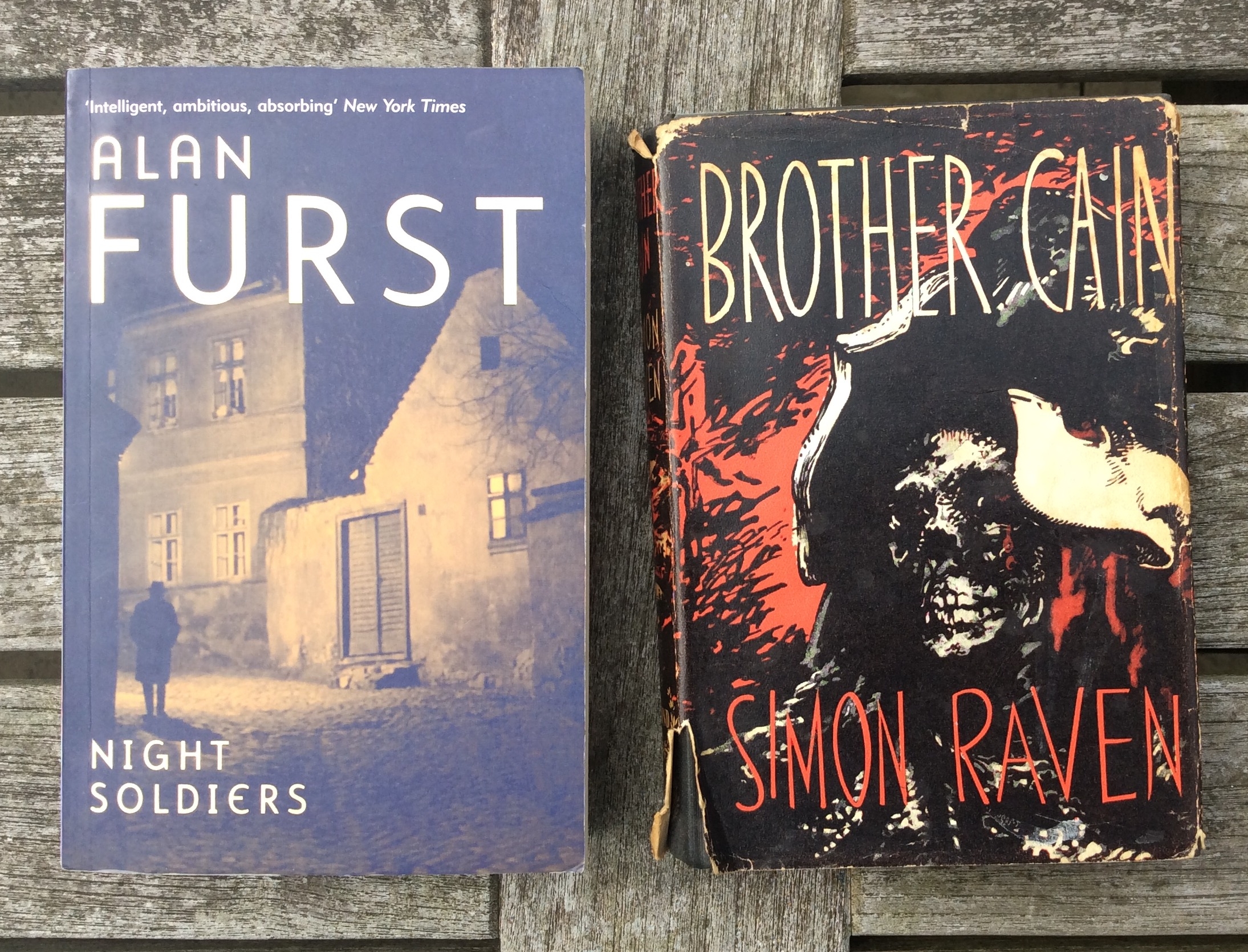 Alan Furst writes atmospheric espionage novels, usually set in WW II. His first successful book was Night Soldiers, published in 1988. It is excellent but it left him with a problem, one he shares with Simon Raven, whose Brother Cain was published in 1959.