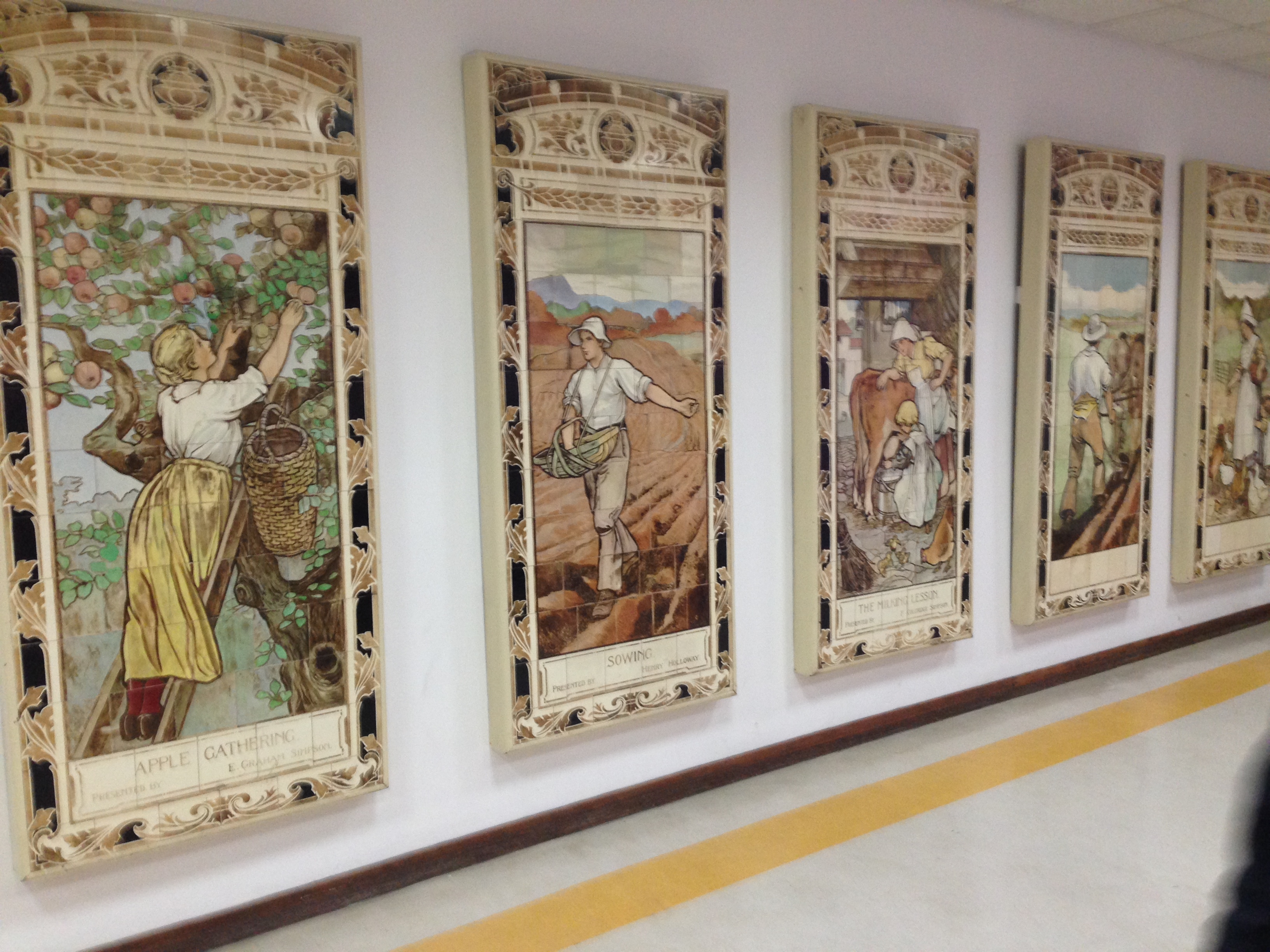 There is some sculpture outside the main door, the best of which is this Henry Moore. Within is a diverse collection of 20th and 21st century art and one older piece, these Victorian tiles depicting agricultural activities.