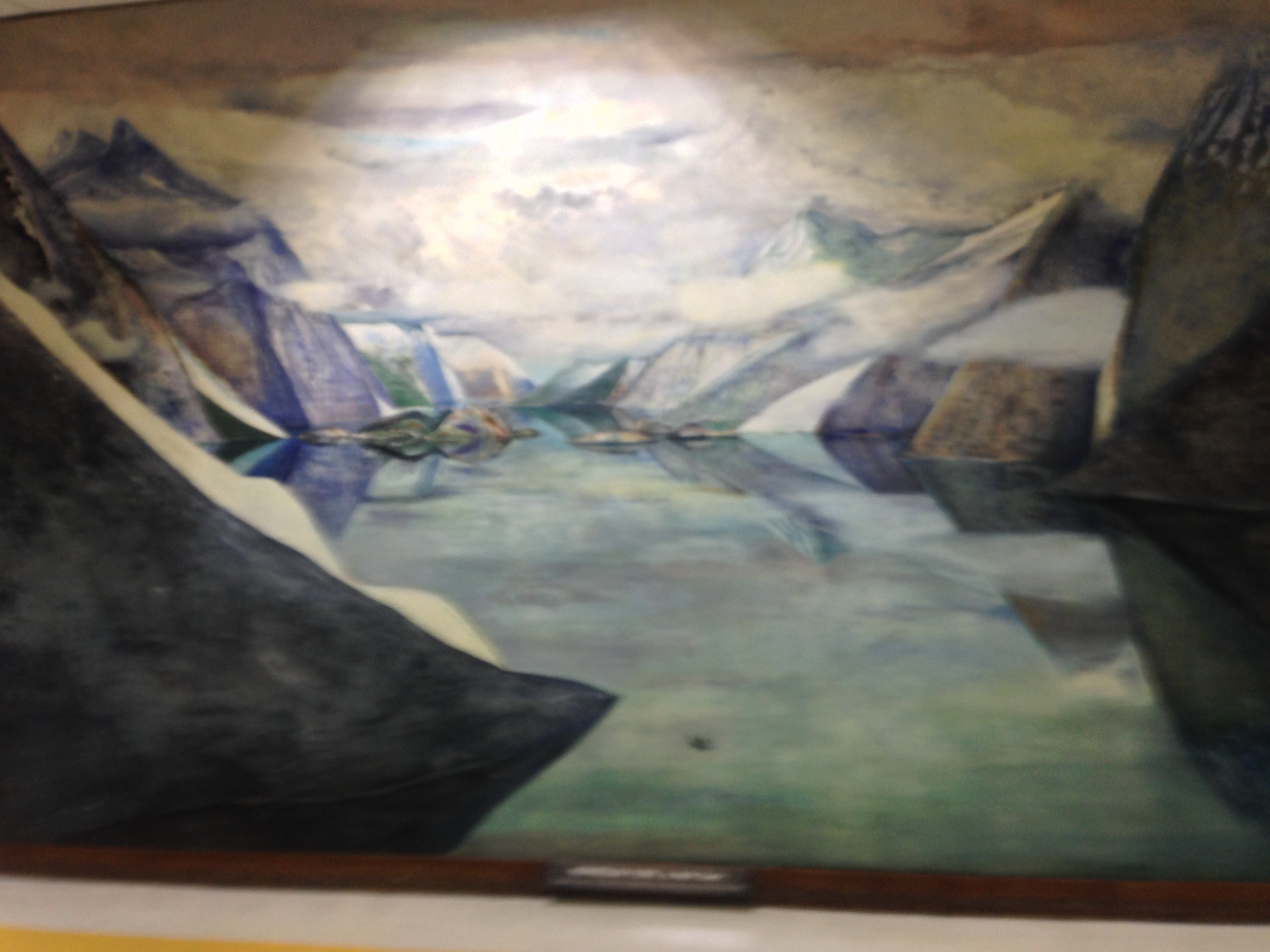 There are oils, prints, etchings, silk screen prints and more. Not all the artists whose work I saw are household names, or not in my house, but you will know Edward Bawden, Patrick Proctor, perhaps Polly Bagnall, and of course Julian Trevelyan. I expected to find work by Julian’s wife, Mary Fedden, but didn’t. However, I saw only a small part of the collection which has work by Julian Opie, Bridget Riley, Patrick Caulfield and many more. Here is Norwegian Fjord by Keith Grant.