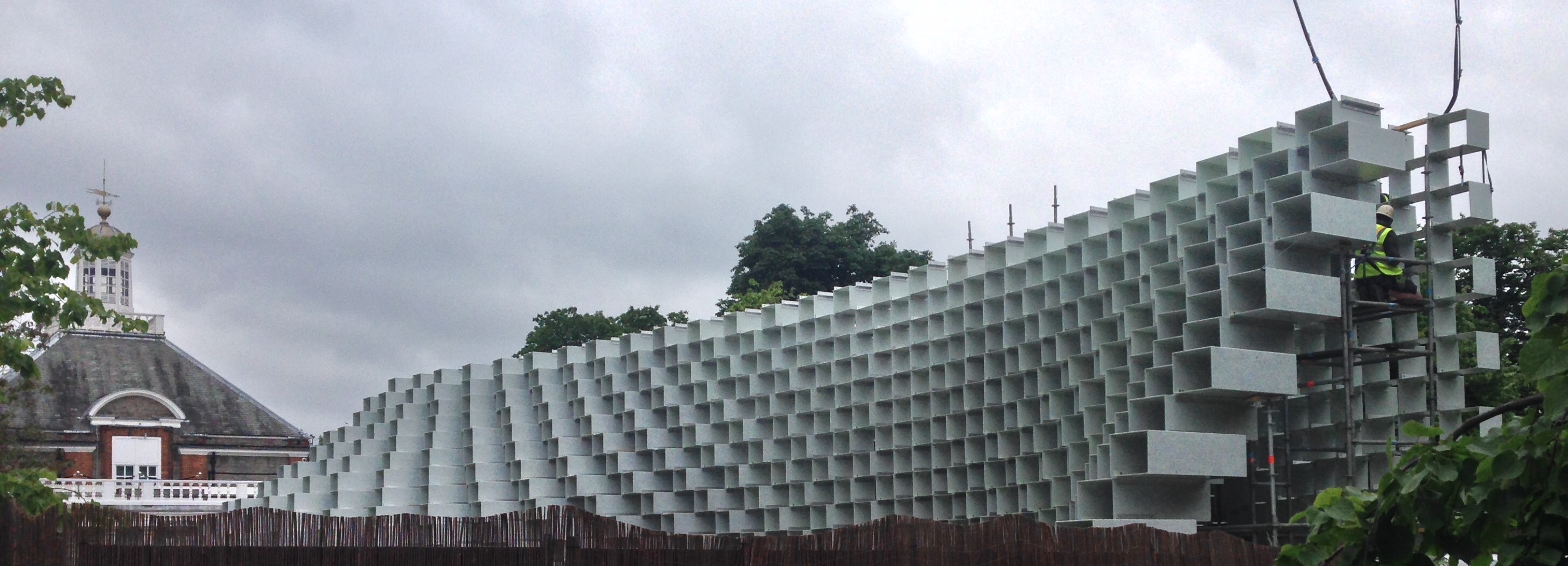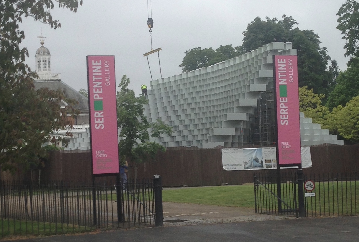 After the Great Exhibition the Crystal Palace was moved to a suburb in south London where it remained until it burnt down in 1936. However, since 2000, the Serpentine Galleries in Kensington Gardens, a biscuit’s throw from Hyde Park, have commissioned temporary pavilions designed by architects who have not had permanent structures built in the UK. They are on a much smaller scale than the Crystal Palace and some of the designs have been, frankly, weird. This year the sixteenth pavilion is designed by Danish firm, the Bjarke Ingels Group. It is not complete and doesn’t open until 10th June but here is a peek over the fence. Bjarke Ingels has designed Two World Trade Center in New York, not yet built, and much else besides in Denmark.