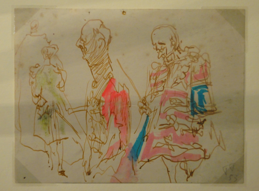Feliks Topolski was an official war artist and afterwards remained in London recording people and events. One of his most famous works is a frieze at Buckingham Palace, commissioned by Prince Philip, depicting the Coronation. I think I recognise Garter (my great-uncle George Bellew) lurking behind the Duke of Norfolk in this detail.image