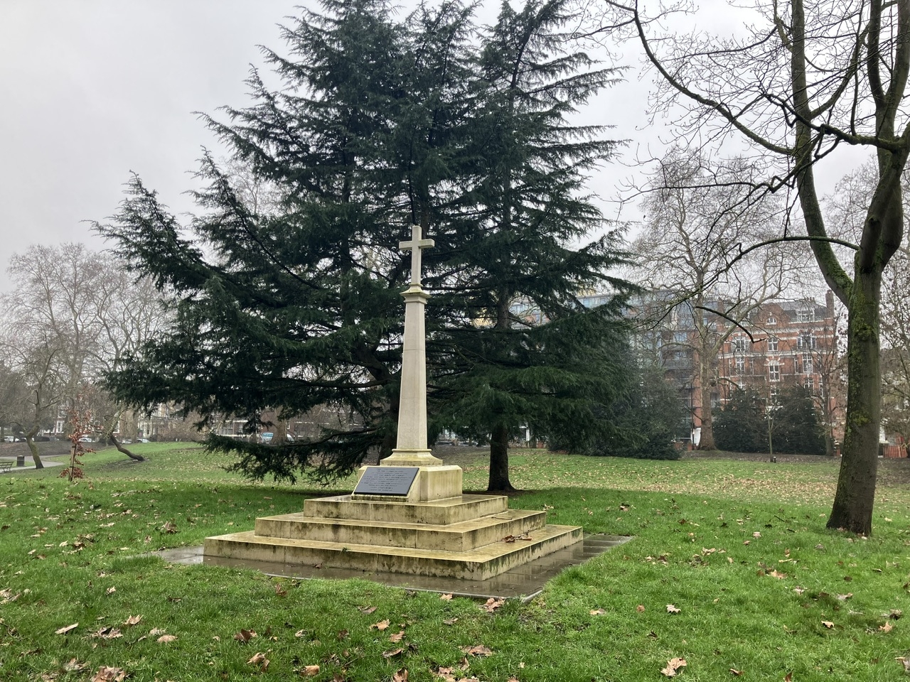 This cross was erected to the glory of God to commemorate 2000 years since the birth of Christ. It is on the site of a manor given to Saint Erkenwald, Bishop of London, by King Caedwalla of Wessex, in the 7th century, for spiritual use probably by his sister, Saint Ethelburga, Abbess of Barking.