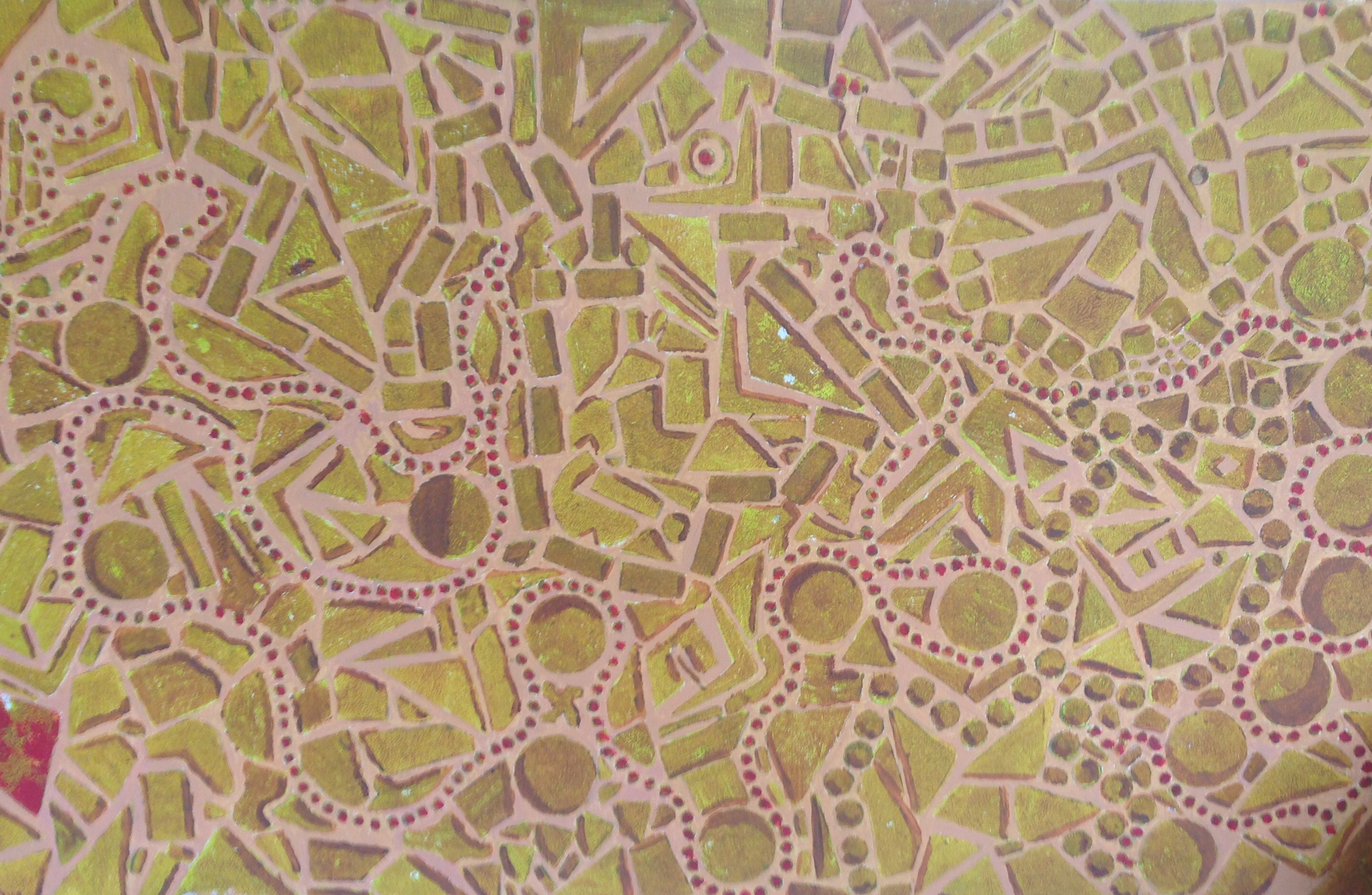 It’s called Below us the World and the artist is in HMP Thameside, one of a slew of new prisons opened this century to accommodate a worryingly large clientele that apparently needs to be kept locked up. Thameside, as the name suggests, is in Greenwich and was opened in 2012. The picture appeals to me because of its primitive simplicity. It evokes similar work done by indigenous Australian tribesmen. Their work is more colourful, they see the sun more than one can in HMP Thameside; take a look.