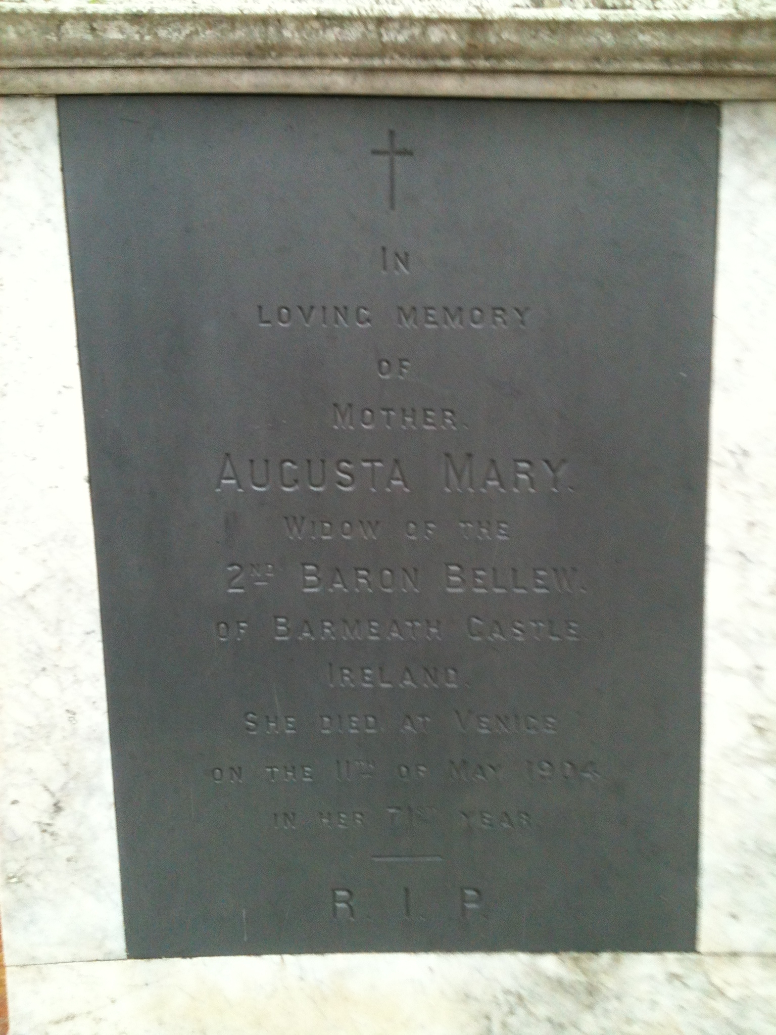 There is a family connection with Venice to be seen on San Michele, the cemetery island. My great-great grandmother is buried there. Her headstone is of Kilkenny marble, shipped out from Ireland.