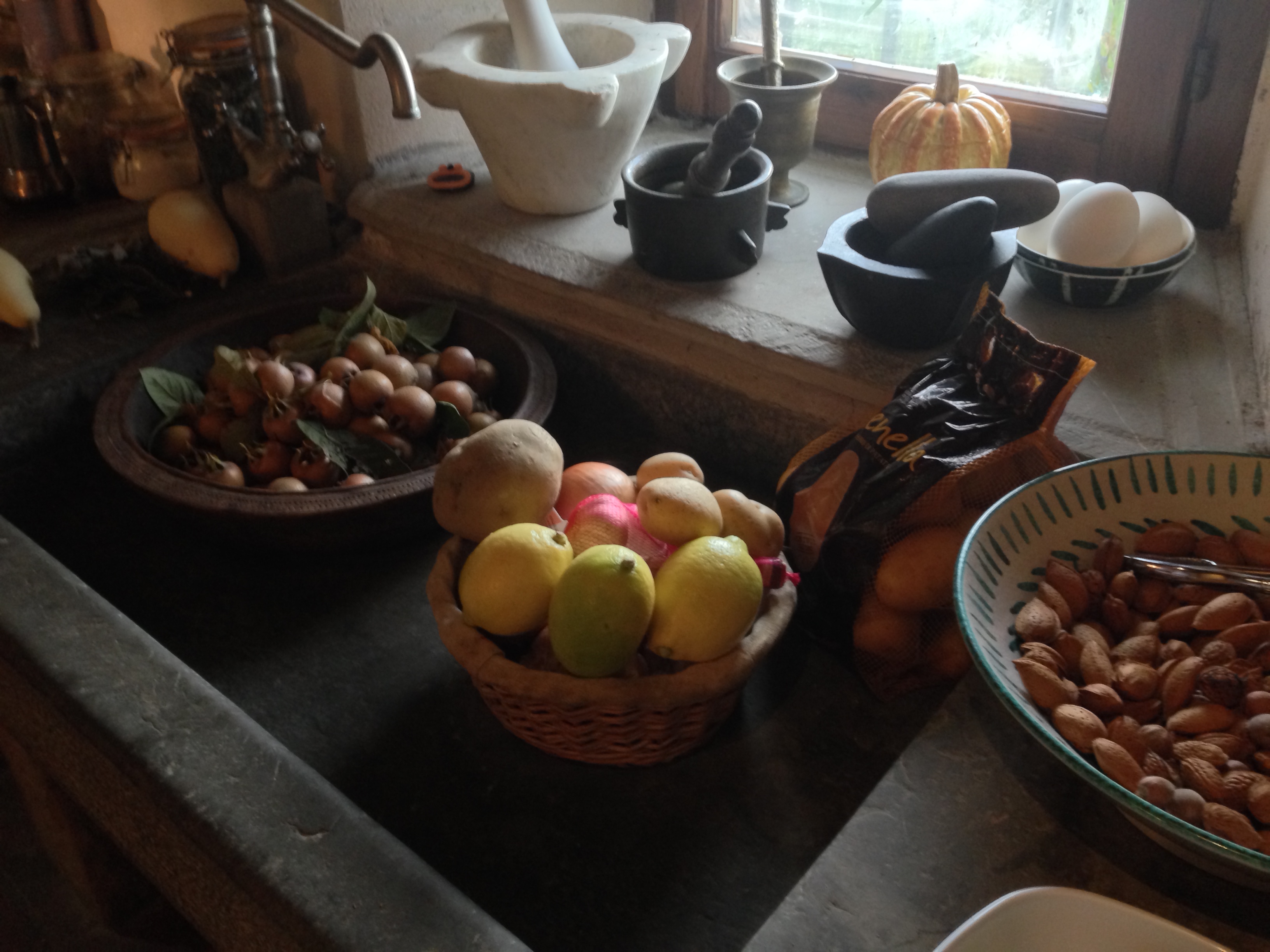 Our Umbrian farmhouse had apparently lovely bowls of autumnal fare including squashes, gourds and pumpkins. Sarah painstakingly prepared them, doing a lot of peeling and de-seeding. Unfortunately there was an ornamental pumpkin in the display. Have you ever eaten a gordo ornamentale?