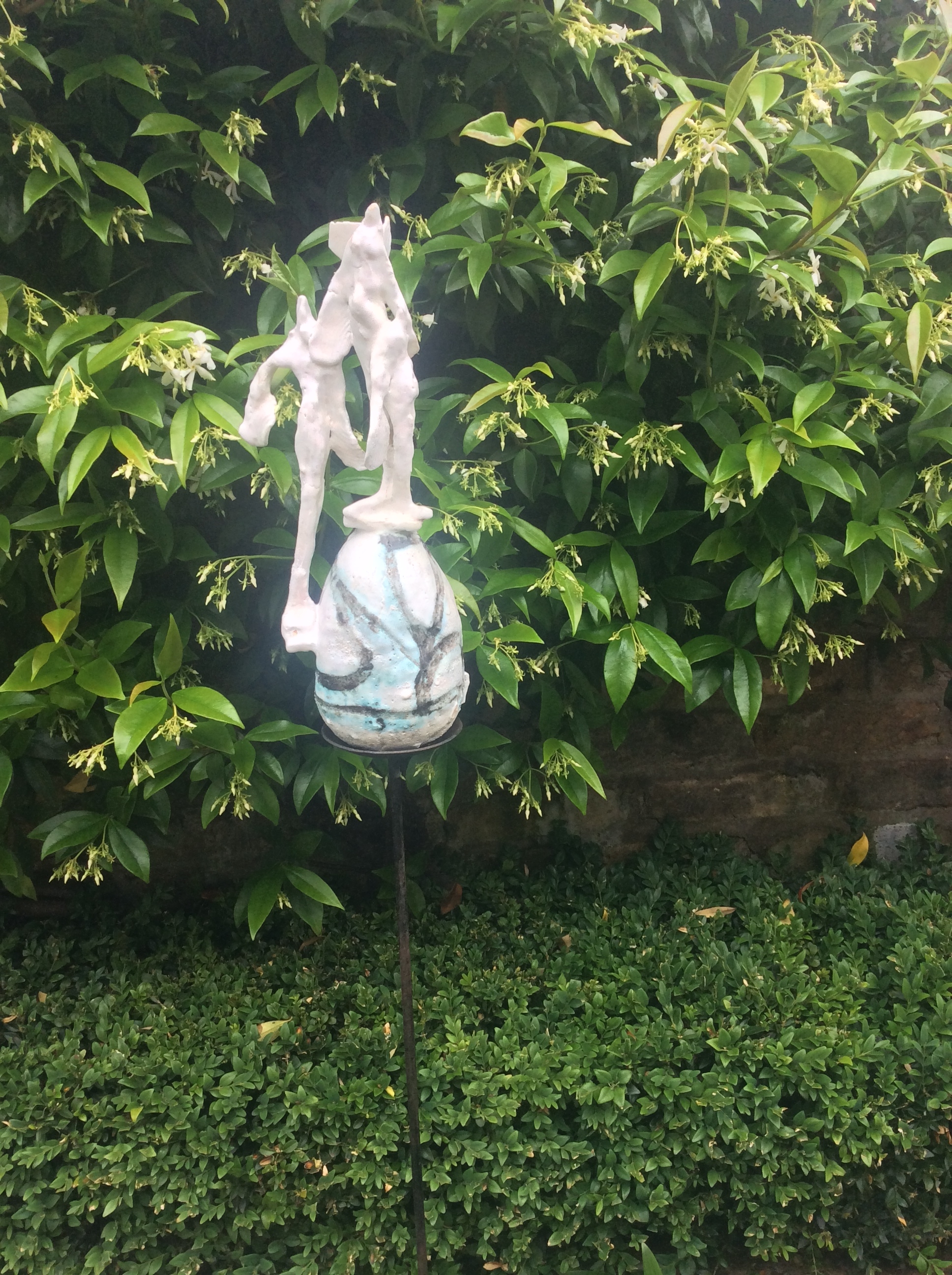So this year I leafed through the booklet listing the artists with more sadness than enthusiasm. However, that is how I came to meet the lovely Caroline Winn. She is a potter based betwixt Chiswick and Cornwall and makes quirky semi-abstract pieces that I instinctively knew would appeal. I immediately bought these two for the kitchen and the garden.